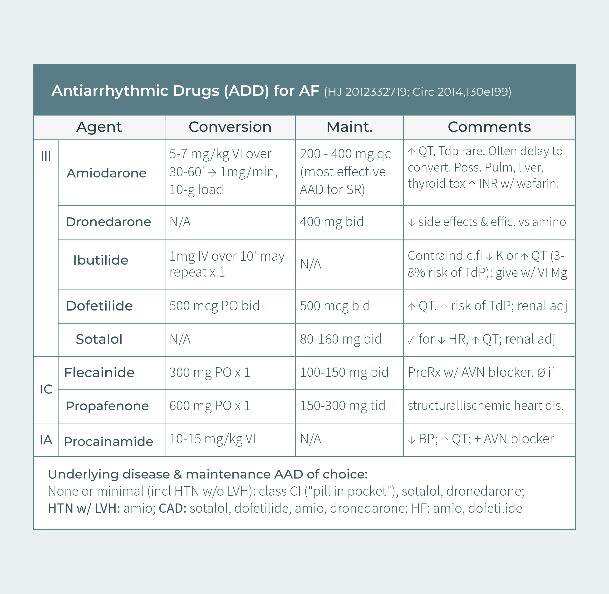 - Before electrical cardiovert, consider pre-Rx w/ AAD (eg, ibutilide), esp. if 1st cardiovert failed